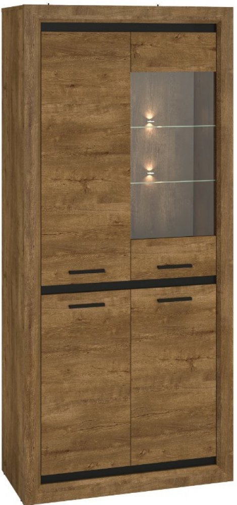 Místo pro vystavení dekorací. Prostor pro uložení různých drobností. To je vitrína BENITO NEW 2501. Dokonale doplní váš interiér o další úložné místo s částečně prosklenými dvířky. Vitrína BENITO je vyrobená z lamina v kombinaci barev dub lefkas/černá . Dekorační lišty po bocích nábytku jsou z kvalitního MDF. Nechybí úchytky z kovu v černé barvě , jež doplní celkový vzhled vitríny. Úložný pros...