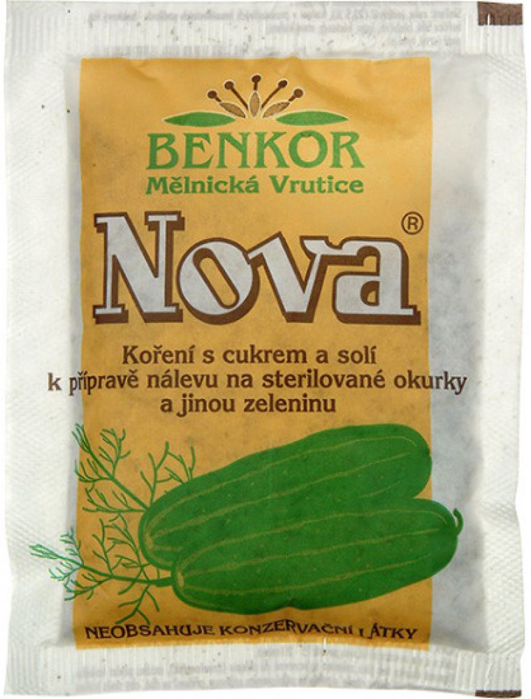Neobsahuje konzervační látky. Tradiční receptura od tradičního výrobce nakládacího přípravku NOVA. Obsahuje sůl, cukr a směs koření s koprem. S pomocí přípravku připravíme nálev znojemského typu k nakládání okurek, zeleniny a hub. Neobsahuje žádné konzervační přísady proto je nutno uzavřené lahve sterilovat. Návod je na každém obalu. Složení: cukr, sůl 22,5 %, bobkový list, hořčice bílá, hřebíček,...