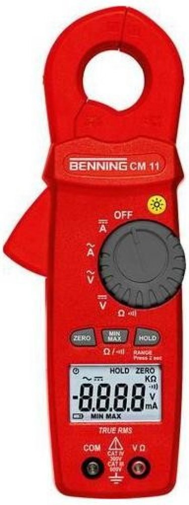 Klešťový multimetr Benning CM 11 True RMS AC/DC miliampér proudu. Digitální displej. Čtyřmístný LCD displej (6000 bodů). Podsvícení LC displeje. Rozsah měření proudu/DC 100 µA - 10 A. Rozsahy měření DC 300,0 mA / 3 000 A / 10,00 A. Rozsah měření proudu/AC 100 µA - 20 A. Rozsahy měření AC 300,0 mA / 3 000 A / 20,00 A. Typ proudu DC/AC. Metoda měření True RMS True RMS. Měření napětí/AC 0,01 V - 600 ...