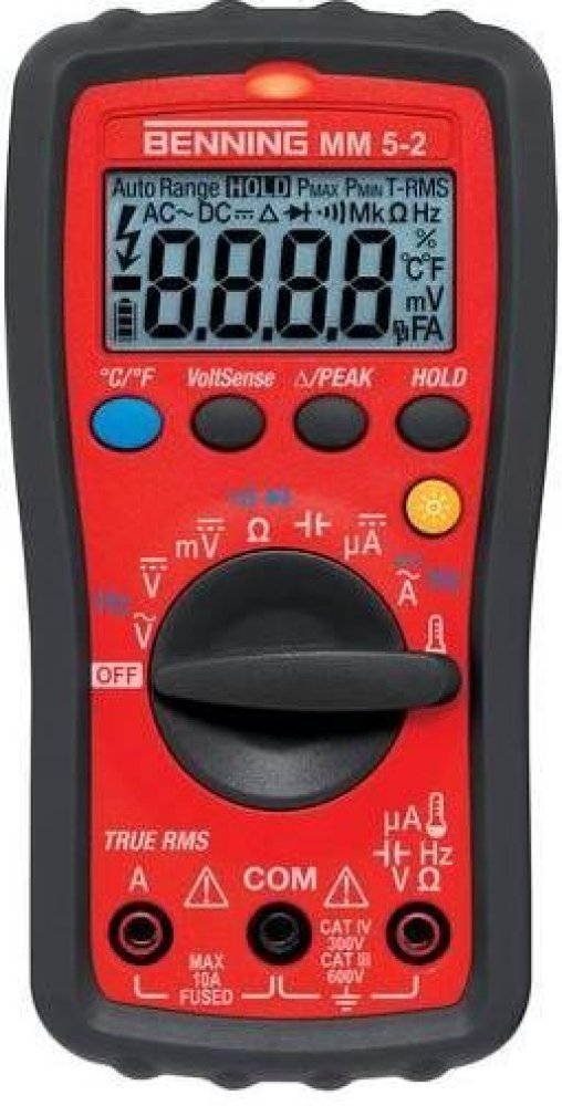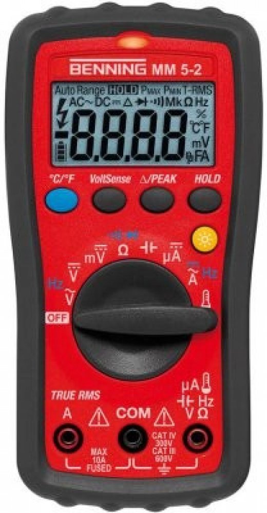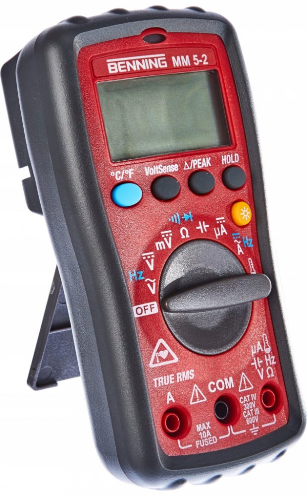 Provedení: Kryt z plastu s odolností proti nárazu s integrovaným ochranným pryžovým rámem. Voltové čidlo a měřicí metoda TRUE RMS pro precizní výsledky měření, také v případě signálů, neodpovídajících sinusovým křivkám. Dodáváme včetně kompaktní ochranné tašky, bezpečnostních měřicích hrotů s dvojitou izolací a baterií.