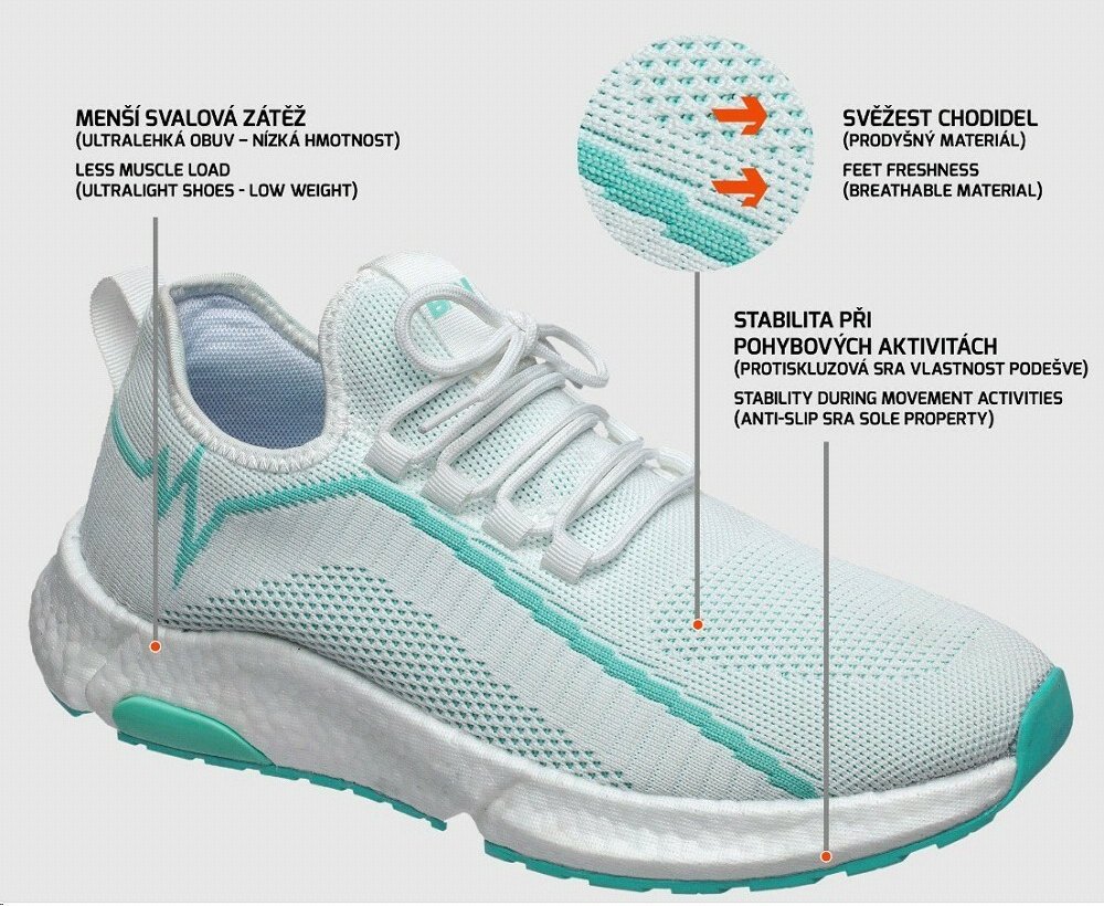 Ultralehká a prodyšná: Obuv je ultralehká, což zvyšuje pohodlí při nošení. Svršek z textilie MESH 3D knit zajišťuje vysokou prodyšnost a umožňuje chodidlům dýchat, co...