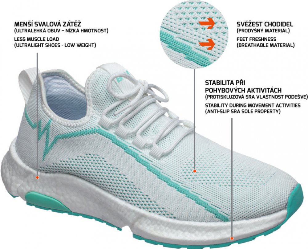 Ultralehká konstrukce: minimalizuje únavu chodidel a nohou i po celodenním nošení.