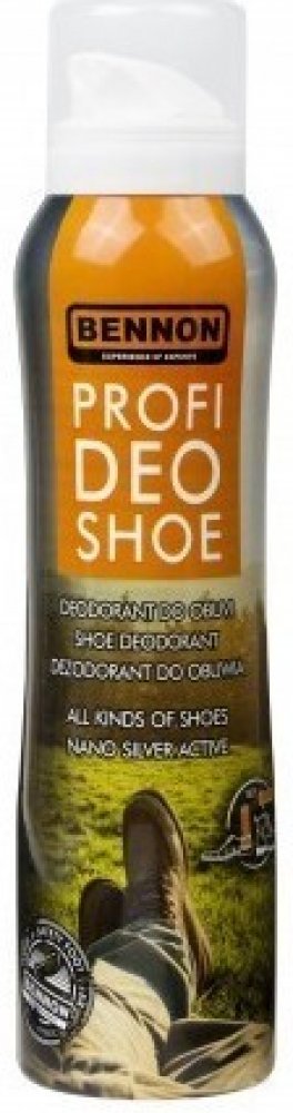 Deodorant BENNON PROFI DEO SHOE OP9000 s obsahem nanočástic stříbra a oxidu křemičitého. Udržuje svěžest v obuvi a chrání ji před nepříjemným zápachem mnohem déle než běžné deodoranty. Stříbro zabraňuje množení mikroorganismů, oxid křemičitý absorbuje nepříjemný zápach.Objem: 150 ml