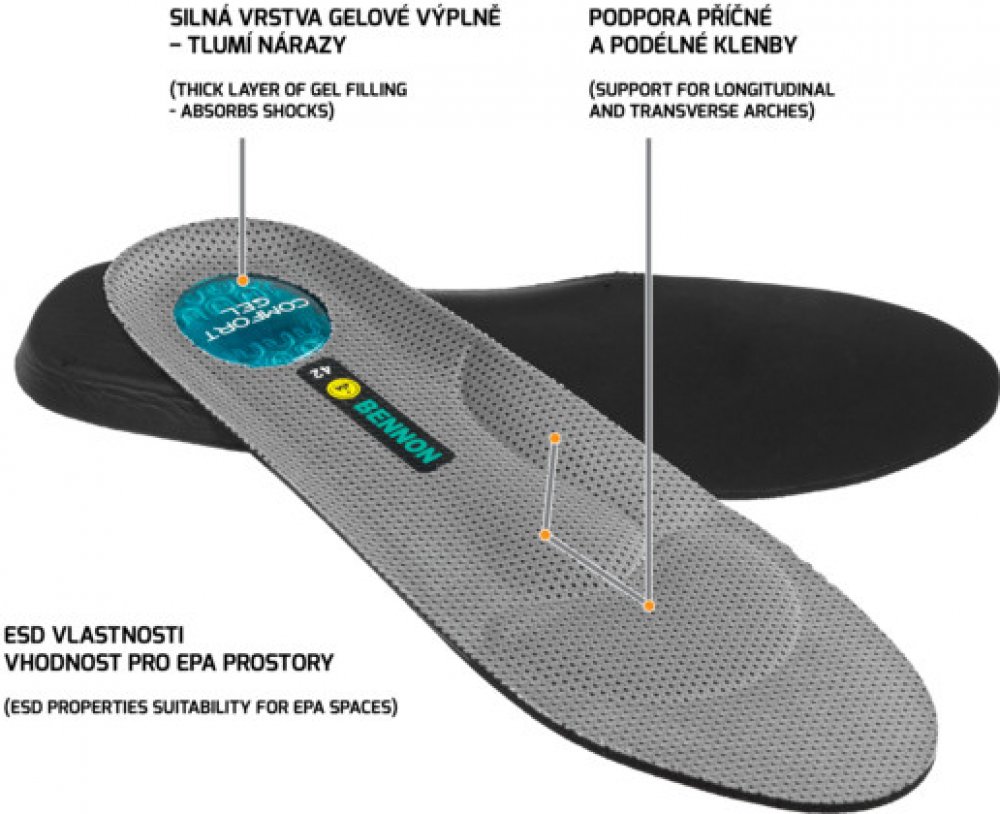 BENNON SUPREMA GEL INSOLE ESD – gelová stélka s anatomickou podporou a antistatickou ochranou