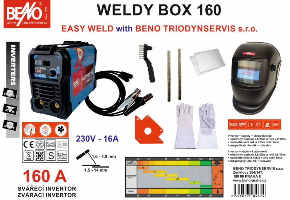• Svářecí set WELDY BOX 160 je ideální volbou pro domácí kutily i profesionální dílny. Kompaktní sada obsahuje vše potřebné pro svařování kovu s maximálním komfortem a bezpečností.
