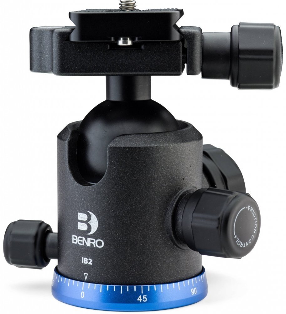 IB2 je trojčinná guľová hlava Benro kompatibilná so systémom ArcaSwiss s nosnosťou 10 kg. Hlava IB2 je vysoká 100 mm a váži 410 gramov. Guľová hlava má dva samostatné zámky na otáčanie o 360° a na uzamknutie guľového kĺbu. Hlava obsahuje aj gombík na ovládanie voľnosti pohybu guľového kĺbu. a 90° výrez, ktorý uľahčuje nastavenie fotoaparátu pri fotografovaní portrétov. Panoramatická základňa je popísaná so stupnicou na jednoduché nastavenie počas panoramatického fotografovania, pri ktorom použijete aj vodováhu na vyrovnanie hlavy k horizontu.