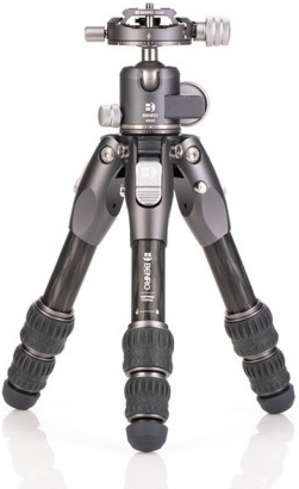 Je prvním modelem z nové řady stativů Benro Tortoise. Jedná se o karbonový stativ určený fotografům na cesty a to právě díky svým nečekaně malým rozměrům a opravdu nízké váze. Jeho nohy se skládají ze tří sekcí. Minimální průměr nohou je 15 mm a maximální 21,8 mm. Ve složeném stavu má délku 215 mm a průměr 80 mm. Náklon nohou lze měnit ve třech pozicích 23°, 55° a 80°. Nosnost 10 kg a váha nohou j...