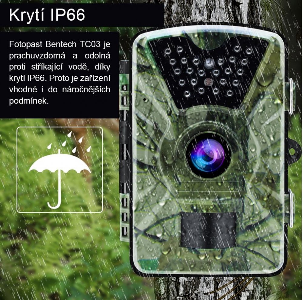Fotopast Bentech TC03 nenabízí GSM modul pro přenos fotografií a videozáznamů. Nicméně pořízené snímky a videa můžete snadno prohlížet a přenášet na PC pomocí USB-C kabelu. Tyto záznamy jsou ukládány na microSD kartu, která může mít maximální kapacitu 512 GB. Díky neviditelnému přísvitu 940 nm je fotopast vhodná pro monitoring zvěře i ochranu majetku.