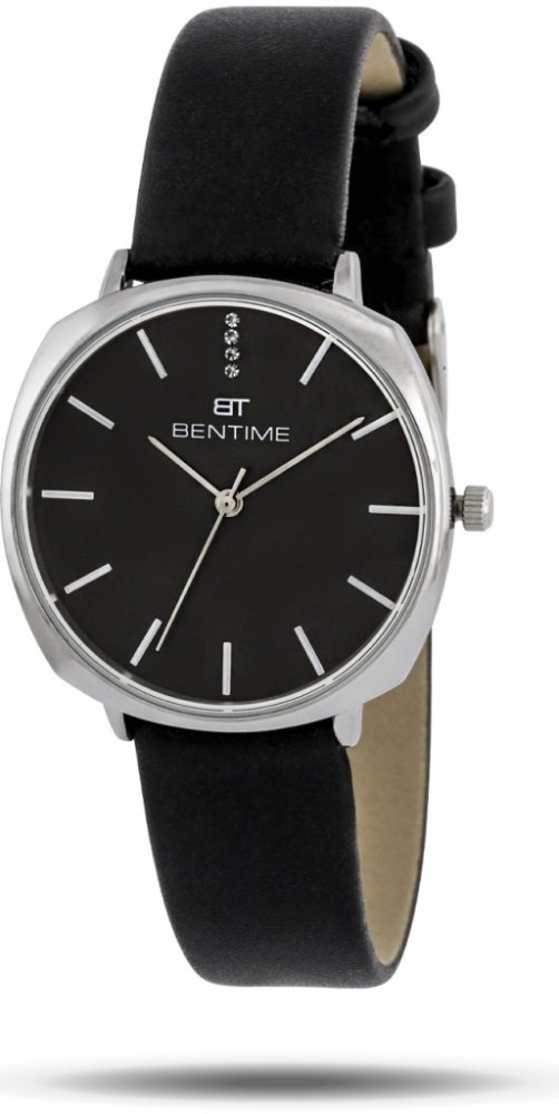 Bentime analogové syntetická kůže elegantní dámské bateriové - quartz 38.0 mm kov bateriové minerální kamínky kulaté černá černá na přezku 1.6 cm na ruku bez číslic stříbrná ocel 3.8 cm střední pevná ocel 38 mm 16.0 mm 38 mm s nenáročnou údržbou (quartz) bez chytrých funkcí