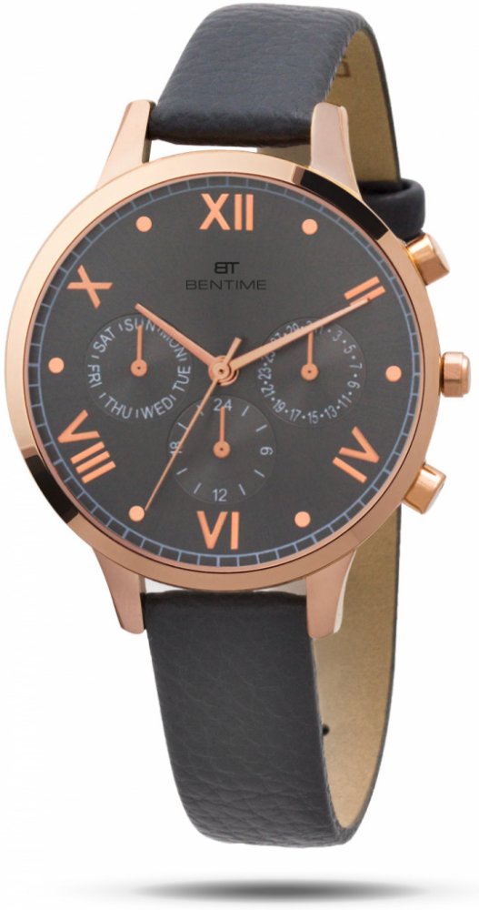 Bentime analogové kůže elegantní dámské bateriové - quartz kov 30 m minerální kulaté šedá šedá na přezku na ruku s římskými číslicemi zlatá 41 mm 2 37 mm bez svícení bez chytrých funkcí