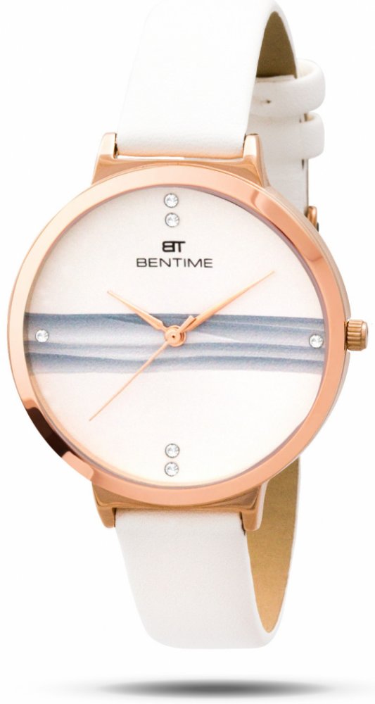 Bentime analogové syntetická kůže sportovní dámské bateriové - quartz kov 30 m minerální zirkony kulaté bílá bílá 41 mm 37 mm