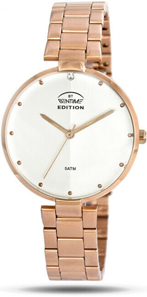 Bentime analogové ocel ocel 50 m minerální dámské bateriové - quartz E3939-CR2-3 kulaté růžová stříbrná 1.5 cm