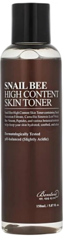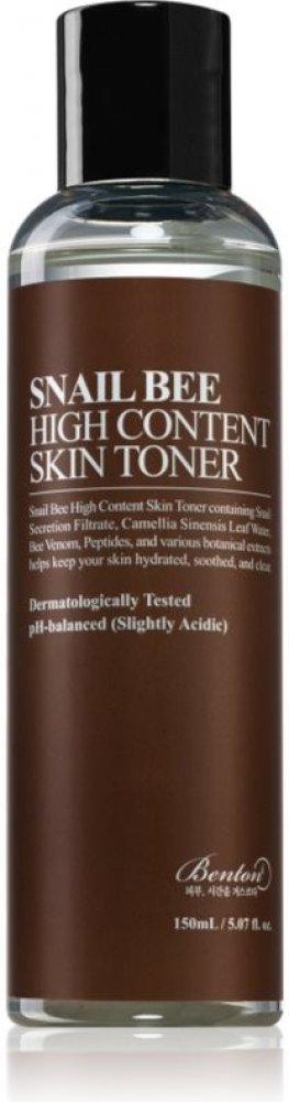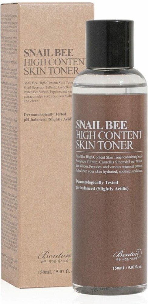Benton Snail Bee High Content Skin Toner je regenerační, zklidňující a vyrovnávací tonikum, které udržuje vaši pokožku hydratovanou a hladkou. Tento toner neobsahuje alkohol a obsahuje šnečí filtrát, který vyrovnává, hydratuje, opravuje poškozenou pokožku a zlepšuje texturu pokožky. Včelí jed, známý pro své přirozené protizánětlivé vlastnosti, pomáhá zklidnit akné, zarudnutí a podráždění. Toto ton...