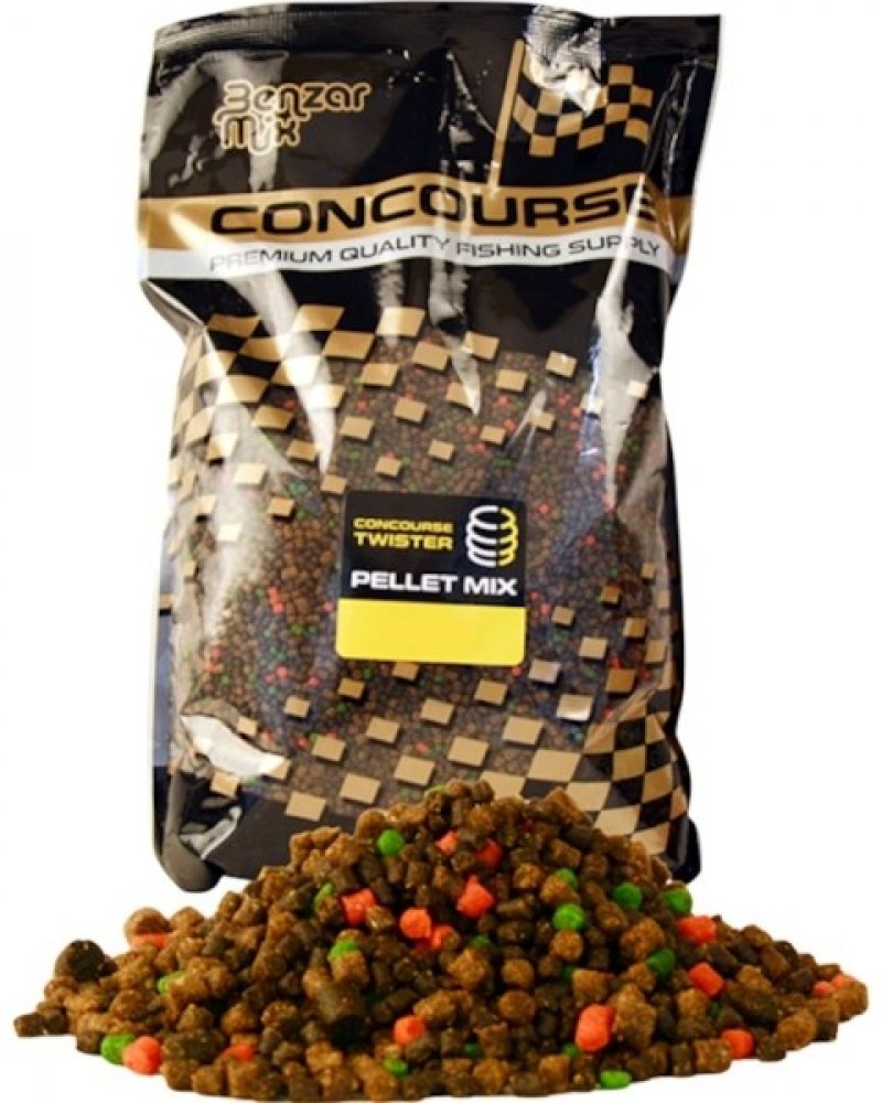 Benzár Concourse Twister Pellet Mixy vznikly jednoznačně na základě zpětných vazeb od zákazníků. Jsou to extrémně intenzivně aromatizované směsy pelet, které dokážou dobře fungovat i v nejnáročnějších situacích. Jejich silná aroma dokáže lehce zlákat i ryby, které již byly často chyceny. V každém sáčku se nacházejí dva druhy rybích pelet a to 2 mm a 4 mm. Díky tomu jsou tyto směsi ideální i na vytvoření základního krmení. Při jejich navlhčování je třeba neustále dodržovat postup, že vodu přidáváme postupně a malými množstvími. Po neustálém navlhčování a odpočinku dosáhnou po 10-20 minutách správnou konzistenci. Concourse Twister Pellet Mixy jsou k dispozici celkem v 8 různých variantách: Zimní směs pellet Letní mix pellet Třešeň Játra Mango Ananas s kyselinou máslovou Chilli oliheň Marcipán Česnek
