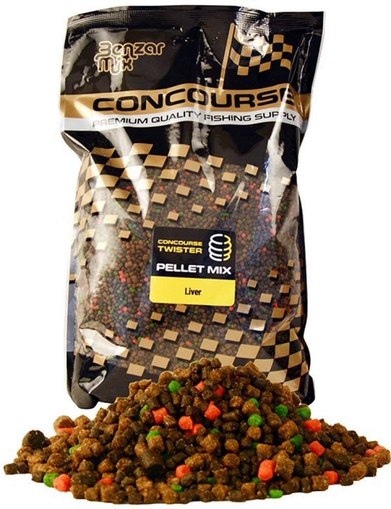 Benzár Concourse Twister Pellet Mixy vznikly jednoznačně na základě zpětných vazeb od zákazníků. Jsou to extrémně intenzivně aromatizované směsy pelet, které dokážou dobře fungovat i v nejnáročnějších situacích. Jejich silná aroma dokáže lehce zlákat i ryby, které již byly často chyceny. V každém sáčku se nacházejí dva druhy rybích pelet a to 2 mm a 4 mm. Díky tomu jsou tyto směsi ideální i na vytvoření základního krmení. Při jejich navlhčování je třeba neustále dodržovat postup, že vodu přidáváme postupně a malými množstvími. Po neustálém navlhčování a odpočinku dosáhnou po 10-20 minutách správnou konzistenci. Concourse Twister Pellet Mixy jsou k dispozici celkem v 8 různých variantách: Zimní směs pellet Letní mix pellet Třešeň Játra Mango Ananas s kyselinou máslovou Chilli oliheň Marcipán Česnek