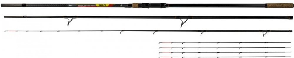 Prut No Limit Method Feeder navržený k lovu velkých ryb. Rukojeť je velmi lehká a praktická, a je doplněna korkem. Jeho držák je nadprůměrně masivní. K prutu jsou vhodné navijáky o velikosti 5000 a 8000. Při použití tenkého monofilového či pleteného návazce si s prutem můžete užít i na 120-150 metrových vzdáleností. Je instalovaný s extra silnou trojstopou řadou NT oček, mezi kterými vlasec klouže s minimálním odporem a je tak vyloučeno zamotání. První očko se nachází na středním dílu, proto se šňůra může odvíjet z cívky bez odporu. K sérii připadá 5 různých 3,9 mm špiček, z kterých 3 jsou skleněné, 2 uhlíkové. Přitom modernizuje sérii No Limit ještě uhlíkový klip na vlasec. Parametry Délka: 4,2 m Počet dílů: 3+5 Vrhací zátěž: 100-250 g Přepravní rozměry: 145 cm Váha: 445 g