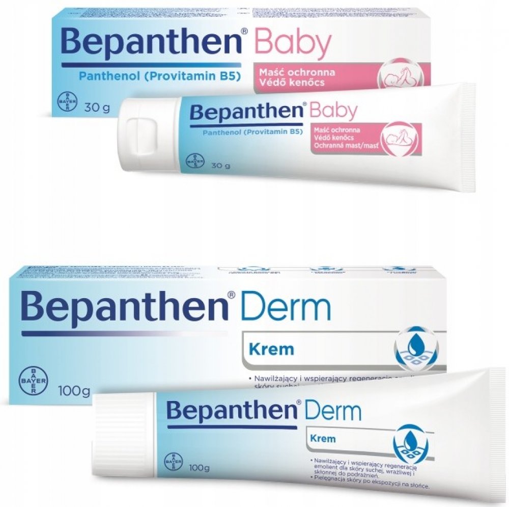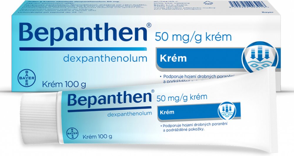 Bepanthen je lehký krém, který regeneruje a hojí suchou i popraskanou pokožku. Je vhodný na následné ošetření suché pokožky např. v zimě po pobytu v chladu. Obsahuje dexpanthenol, který se v kůži přemění na kyselinu panthotenovou. Tato látka je nezbytná při tvorbě kůže a k její obnově. Napomáhá hojení poraněné kůže, přispívá ke zklidnění podrážděné pokožky. Vlastnosti: ošetřuje suchou a rozpraskanou pokožku navrací pokožce pocit komfortu a zdravý vzhled tvoří na pokožce ochranný film snadno se roztírá nezanechává mastný povrch Účinné složky: dexpanthenol - snadno proniká do kůže a v buňkách se mění na vitamín B5, který je pro organismus nepostradatelný k tvorbě a regeneraci kůže a sliznic Použití: Krém nanášejte v tenké vrstvě na vodou očištěnou podrážděnou nebo zanícenou kůži podle potřeby 1 – 2x denně až do úplného zhojení. Při suché pokožce nanášejte 1-2x denně na postižená místa.