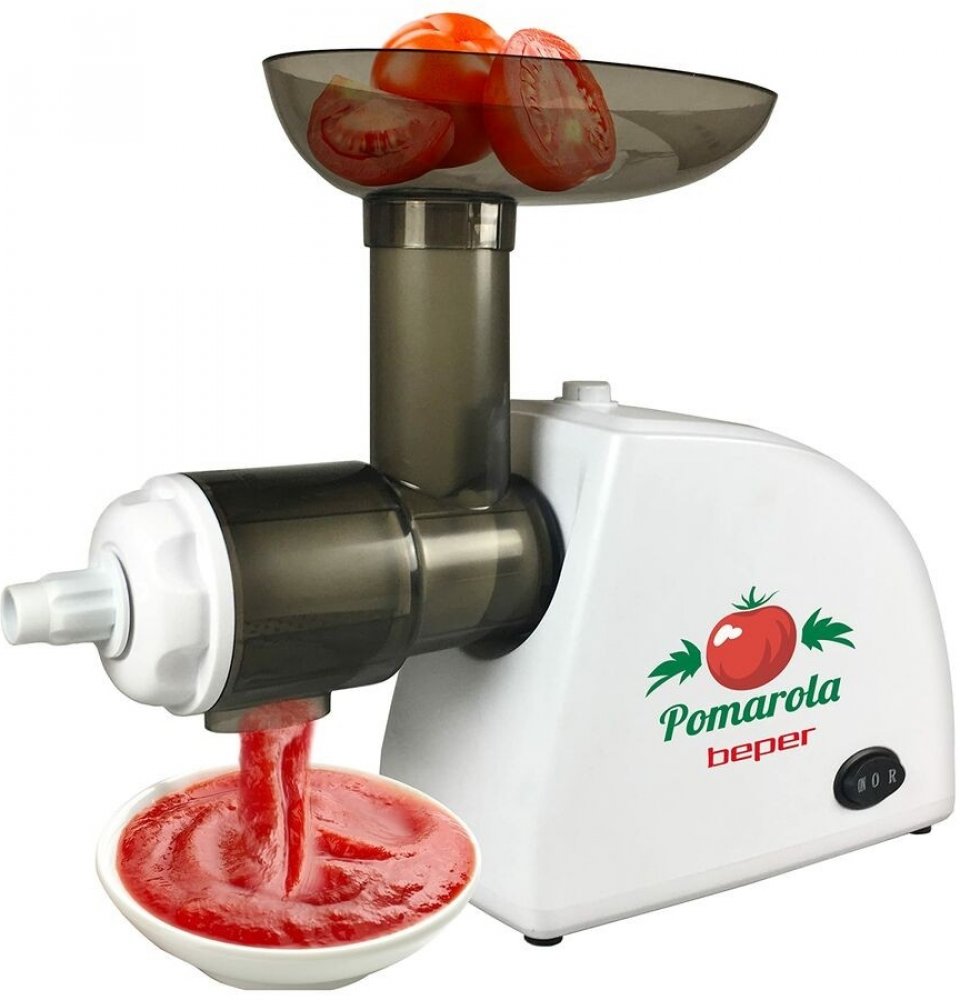 BEPER BP720 elektrický odšťavňovač rajčat je ideální pro přípravu rajčatových konzerv, omáček, zeleninových pyré a ovocných šťáv. Tento přístroj po vložení rajčat do zásobníku automaticky oddělí "odpad" tedy slupky od rajčatové dužiny. Vybaven funkcí zpětného chodu a praktickou rukojetí. Ochrana proti přehřátí a stabilní neklouzavé nohy jsou samozřejmostí. elektrický odšťavňovač rajčat ideální pro přípravu rajčatových konzerv, omáček, zeleninových pyré a ovocných šťávautomaticky oddělí slupky od rajčatové dužinyfunkce zpětného chodu ochrana proti přehřátí stabilní neklouzavé nožičky tělo přístroje z ABS, filtr (sítko) z nerezové ocelisoučástí je plastový podnos a vytlačovač300 WVýrobky italské značky Beper vynikají hezkým a poutavým provedením, a proto dobře zapadnou do Vaší domácnosti nebo kanceláře. Mezi produkty můžeme zařadit například malé domácí elektro spotřebiče a příslušenství.Kvalita je pro Beper stejně důležitá jako design výrobku. Firma disponuje vlastní špičkovou laboratoří a díky kontinuálním investicím do výroby a technologií si značka získala mnoho věrných zákazníků a její zboží se prodává po celé Evropě.