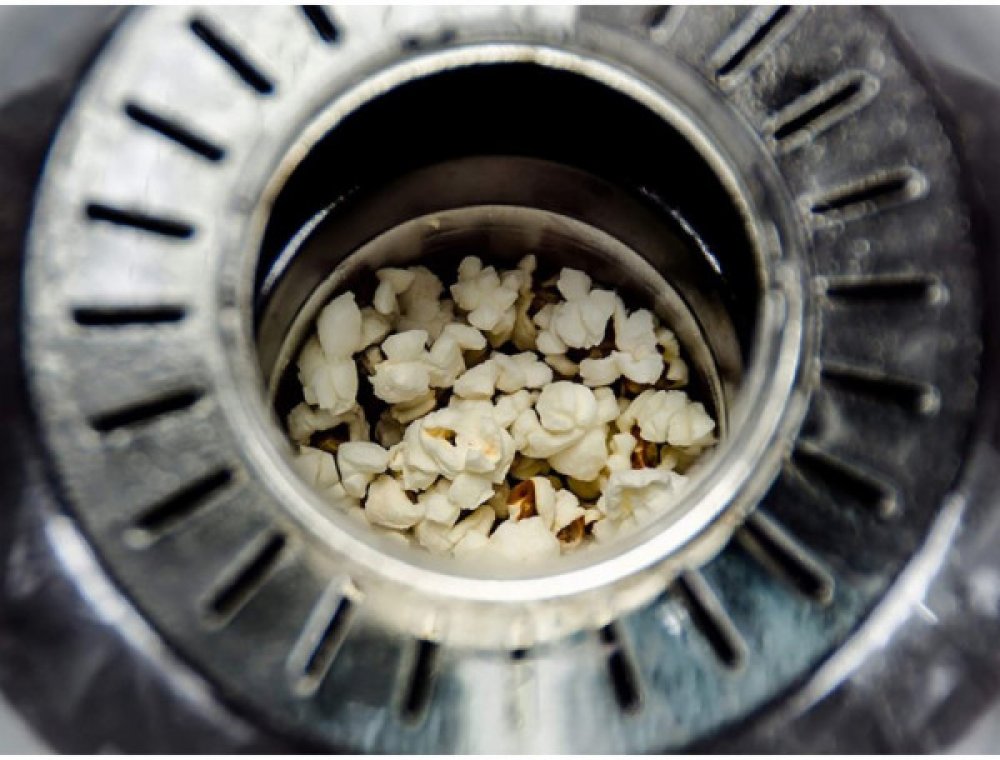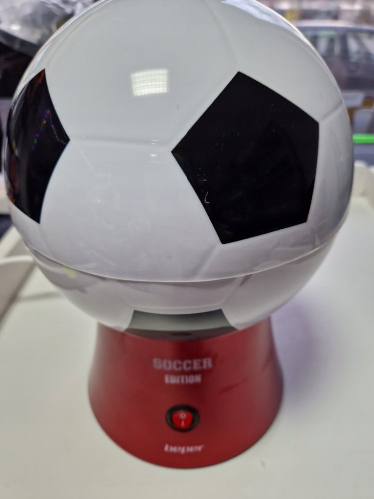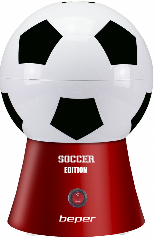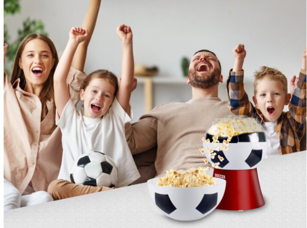 Popkornovač, ve tvaru fotbalového míče nejen pro fotbalové fanoušky, díky cirkulaci horkého vzduchu připraví popcorn za méně než 3 min bez nutnosti přidávat olej nebo máslo