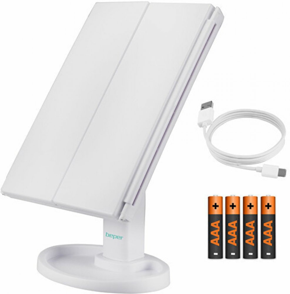 Chcete zdokonalit své líčení? Pak ho musíte nanášet při správném světle, správné osvětlení je totiž klíčem k úspěchu pro bezchybný make-up. Díky správnému osvětlení můžete vyrovnat, rozetřít a sladit podkladový make-up s tónem vaší pleti. Kosmetická zrcadla s LED světly jsou těmi nejlepšími pomocníky, protože poskytnou přirozenější odraz, zapomeňte na zářivky a žárovky, které vše zkreslují, navíc nevyzařují teplo a jsou chladné na dotek.BEPER P302VIS050 kosmetické zrcadlo s LED osvětlením je praktickým řešením pro pohodlné a bezchybné líčení a obecně pro péči o pleť. S 22 vestavěnými světelnými body LED, ideálně nasvítí váš obličej. Nabízí 3 úrovně zvětšení (normální, 2x a 5x), což zvláště oceníte při detailním tvarování, vytrhávání chloupků či konturování rtů a očí. Praktičnost doladí dotykové zapínání/vypínání a jeho odkládací základna. Otáčí se, naklání se a má dvojí napájení (baterie nebo USB), to vše pro vaše maximální pohodlí.