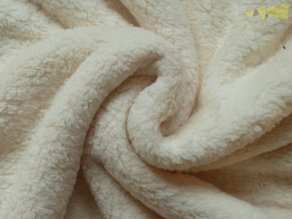 Tato překrásná imitace smetanové kožešiny, nazývaná též "Beránek" má oboustranně měkoučký povrch, díky kterému bude váš outfit nejen opravdu výrazný, ale také velmi pohodlný. Sherpa je vhodná na vesty, kabátky, bundy, přehozy nebo jako vnitřní vrstva do dětských fusaků. Využívá se i k dekoračním účelům.