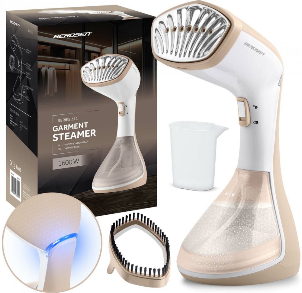 Napařovač oděvů Berdsen BD-311 s příkonem 1600 W je velmi výkonný a stylový pomocník pro rychlé vyhlazování záhybů a osvěžení tkanin přímo na ramínku. Intuitivní ovládání jedním tlačítkem (s blokací) zjednodušuje práci, silný výstřik páry 26 g/min si poradí i s odolnými záhyby a velká vyjímatelná nádržka na vodu o objemu 230 ml s plovákem umožní pohodlné napařování včetně práce v horizontální polo...