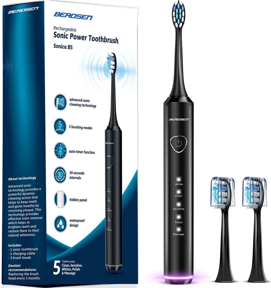 Kvalitný Elektrický sonický zubní kartáček, 1ks, černá | Sonica B5 za 598 Kč.