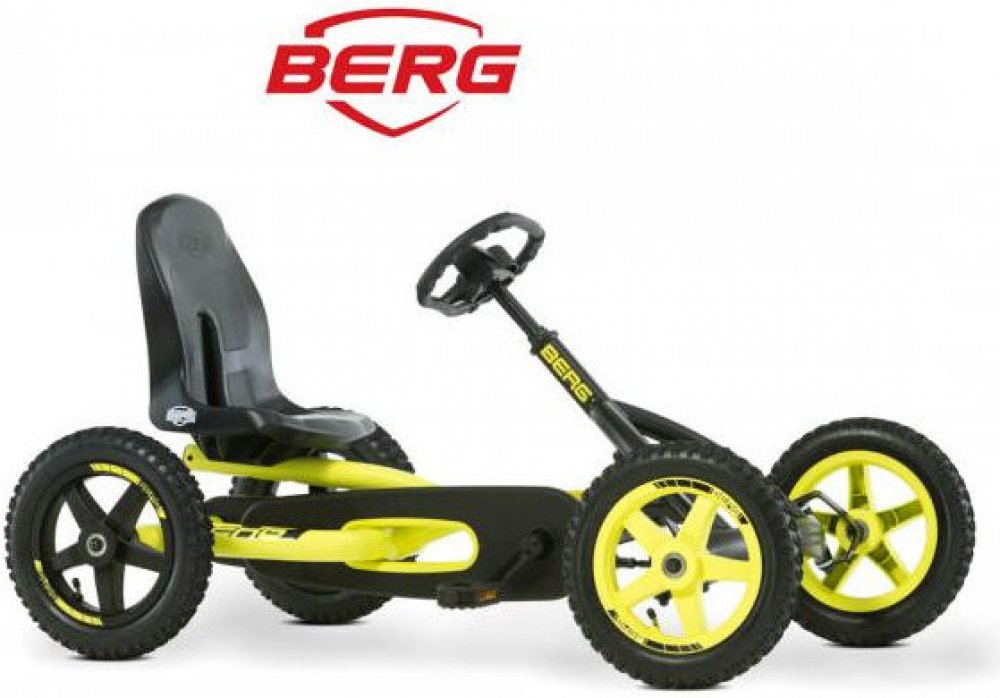 Návod k obsluze Berg Buddy Chceš si to užít se šlapací motokárou? Pak je pro tebe skvělý BERG Buddy Cross přesně to pravé Tato robustní motokára je nezaměnitelná díky zářivým barvám a nápadným nálepkám. Off-road pneumatiky obstojí při každém dobrodružství! Díky pneumatikám je tato šlapací motokára velmi pohodlná. Díky kyvadlové nápravě budeš na silnici s BERG Buddy velmi stabilní. A jízda se systémem BFR je hračkou! Dítě může brzdit pedály, ale ihned po zastavení je možné začít couvat. Volant a sedadlo jsou nastavitelné, díky čemuž se šlapadlo BERG snadno přizpůsobí velikosti dítěte. Šlapadlo je vhodné pro děti od 3 do 8 let. S náůadnými terénními pneumatikami, které umožňují ve šlapadle zvládnout jakýkoli terén. Duotonová barva a nápadné samolepky činí z tohoto vozítka odvážný model. Větší pohodlí díky pneumatikám. Díky kyvadlové nápravě budeš na silnici s BERG Buddy velmi stabilní. Jedinečný BFR systém umožňuje brzdit pedály a okamžitě po zastavení začít couvat. Volant a sedadlo jsou nastavitelné, díky čemuž poroste tato motokára spolu s dítětem. Jednoduše se staví. Díky příslušenství Buddy si tuto skvělou motokáru můžete sami vylepšit. Podrobnosti: Série: BERG Buddy BFR rozbočovač Náprava s pedály 12 palcové ráfky s pneumatikami Nastavitelný volant a sedačka Rozměry: 73 x 68 x 26 cm Nosnost: max. 45 kg Věk: od 3 let