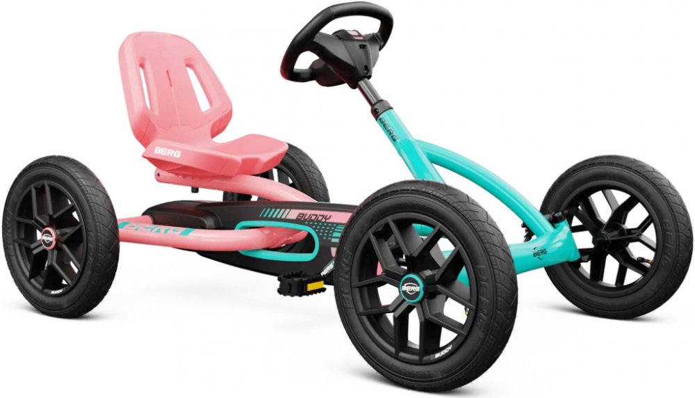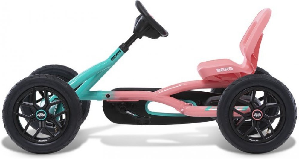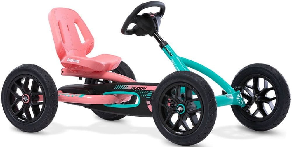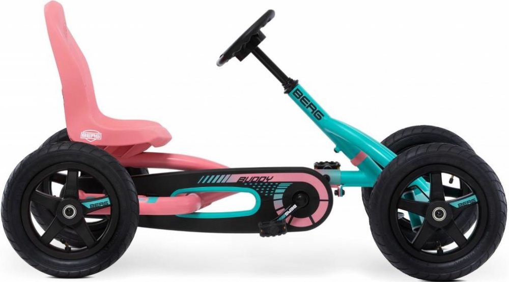 Motokára má nastavitelné sedadlo, a tak roste současně s vaším dítětem. Sedadlo je ergonomicky tvarované a jeho součástí je držák na vlajku (vlajka je prodejná samostatně). Řídítka i pedály mohou být ovládány nezávisle na sobě. Čtyři kola BERG Buddy a otočná náprava drží motokáru pevně a bezpečně na zemi. Pomocí pedálů s brzdovým systémem zastavíte téměř okamžitě. Jízda je možná dopředu i vzad.