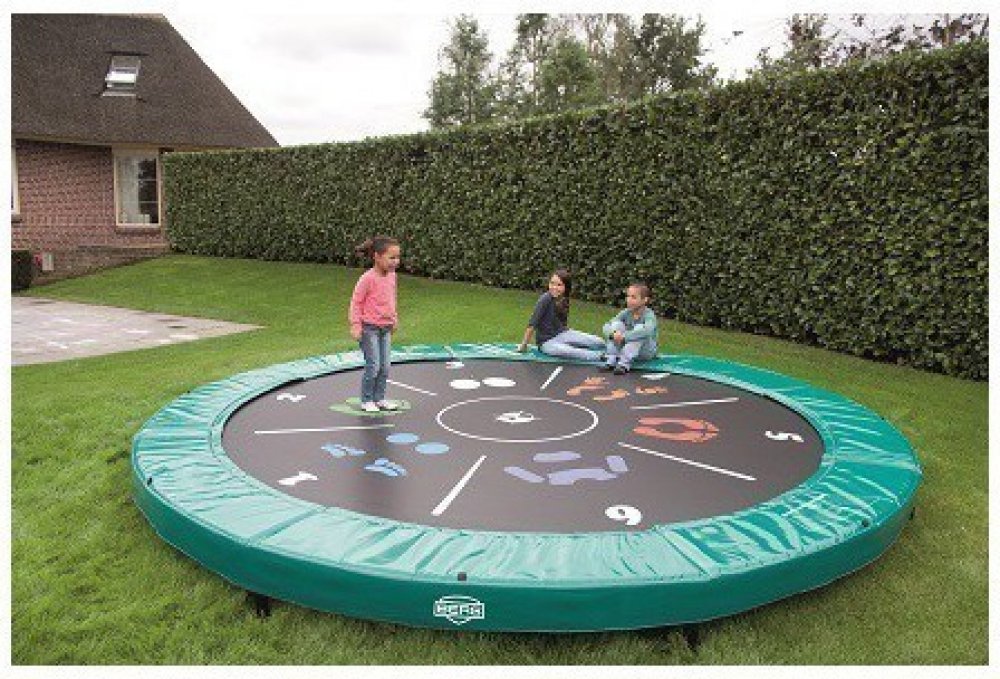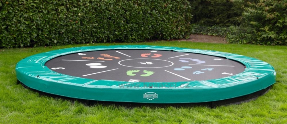 Podlahová trampolína nabízí jedinečné a patentované řešení pro lidi, kteří chtějí trampolínu instalovat tak, aby byla co nejméně vidět. Elegantním a jednoduchým způsobem lze trampolínu zapustit třeba na vaší zahradě jen pár centimetrů nad okolním terénem. Není třeba složitého vykopávání, dle ověřeného způsobu lze jednoduše podle návodu vyhotovit prostor pod trampolínou. Horní příčka stojí na nízkých nohách, které jsou pevně zakotveny k zemi. Velmi bezpečný ochranný okraj trampolíny o šířce 40cm a tloušťce 30mm. Vysoce kvalitní a testované skákací plátno vyrobeno v Holandsku) má zvláště odolné osminásobné prošití. Pružiny Goldspring+ umožňují skákat výše a bezpečněji. Zesílená antikorozní úprava rámu. Vylepšená konstrukce rámu T-section. Pružiny mají tvar dvojitého kuželu, pružné lože propouští vodu.