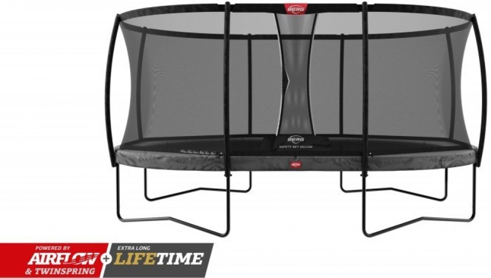 Oválná trampolína BERG Grand Champion Regular 470 šedá s ochrannou sítí Deluxe