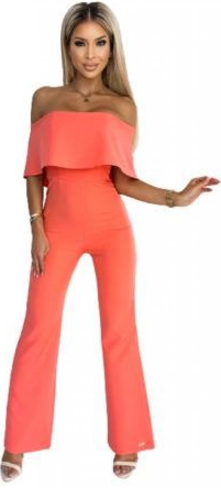 Dámský Overal model 181130 Numoco XL růžový Body v broskvové barvě s volánkem a odhalenými rameny. Horní díl je obšitý korzetem s kosticemi. Zapíná se na krytý zip na zádech. Značka bergamo. Polská výroba. LIMITOVANÁ EDICE. Oblečení » Overaly » Dámský Overal model 181130 Numoco XL růžový