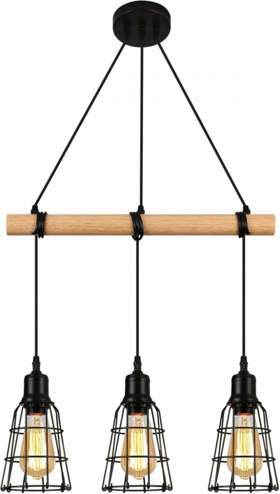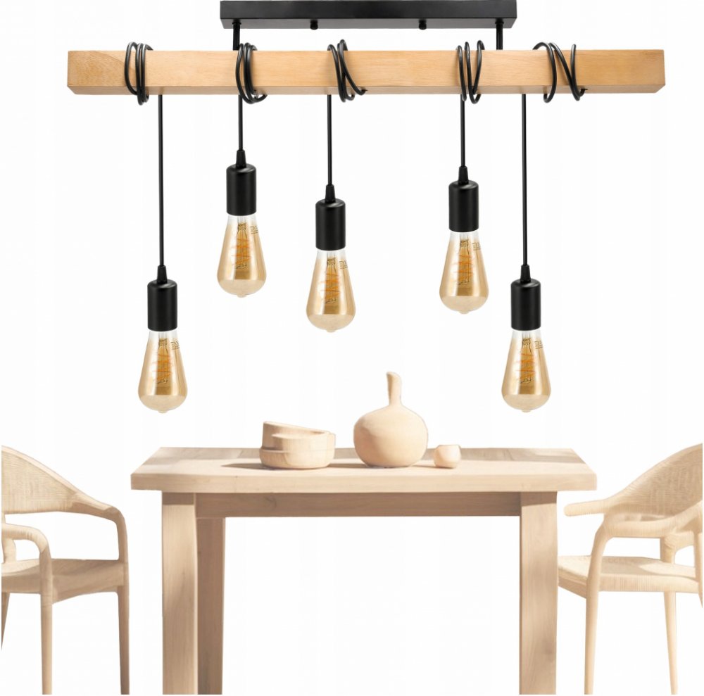 Závěsné Stropní Svítidlo LED dřevěná 5xE27 Nosník Převis Černá Lustr Loft⭐ Super cena⭐