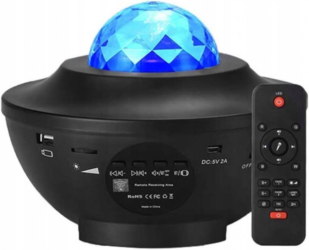 Hvězdný projektor je skvělou alternativou k běžným nočním lampičkám, nádherně ozdobí místnost a dodá jí tajemnou atmosféru. Skvěle se hodí jako příležitostná dekorace a dětem přinese mnoho radosti. Projektor nevyžaduje baterie - je úsporný, ekologický, pohodlný a praktický.Dárek - ideální jako skvělý dárek k narozeninám / vánocům nebo k jakékoli jiné příležitosti.Hlídání dětí - když necháte projektor v noci zapnutý, pomůže to dítěti překonat strach ze tmy, navíc po připojení k Bluetooth se efekt umocní tichým přehráváním hudby.Zpestřete večírek / domácí párty - možné funkce projektoru dokonale vylepší atmosféru večírku nebo setkání.Originalita - zařízení je v databázi GS1 Poland a má všechna potřebná označení a certifikáty Evropské unie, jako je CE nebo RoHS.Technické údaje: Barva: černá Materiál: plast Napětí: 5V / 2000mA Funkce: LED projektor, reproduktor, Bluetooth, dálkové ovládání Materiál stínidla: plast Barvy světla: červená / zelená / modrá / bílá / kombinace výše uvedených barev Světelné efekty: 21 světelných efektů Baterie pro dálkové ovládání: 2xAA baterie (nejsou součástí balení) Velikost: 16 * 16 * 13 cm Hmotnost: 0,6 kgObsah sady:LED hvězdicový projektorKabel USBKartonová krabice - tematický obal projektoru ideální jako dárek.Dálkové ovládání - na dvě baterie AAA (baterie nejsou součástí dodávky).Popis funkcí zařízení:Barevné kombinace - 10 různých světelných režimů nastavitelných pomocí dálkového ovládání.Barevná paleta - modrá, červená, zelená, bílá, lze zobrazit jednu nebo dvě barvy současně.Nastavitelný jas světla LED - (40 %, 70 %, 100 %).Vestavěné stopky - lze nastavit automatické vypnutí projektoru (1h, 2h nebo po celou dobu).Rychlost otáčení - volitelná (bez pohybu, pomalá, střední, rychlá).Režim pomalé změny - pokud je povolen, jednotka mění barvy v režimu, kdy aktuální barva (barvy) vybledne a jemně přejde na další barvu (barvy).Režim Party - dynamická synchronizovaná změna barev podle rytmu hudby.Bluetooth - díky vestavěnému reproduktoru můžete po připojení k zařízení přehrávat hudbu z telefonu.Zelené hvězdičky - jsou vysílány laserem, můžete si vybrat postupné zhasínání a vzhled hvězdiček nebo jejich stálé svícení či vypnutí.Pouze hvězdy - možnost vypnout světlo LED a ponechat pouze hvězdy vytvoří v místnosti skvělý efekt. Dálkové ovládání a hudba - s dálkovým ovladačem (použijte 2 * baterie AAA, nejsou součástí dodávky) se nemusíte obávat vstát z postele nebo pohovky, abyste zapnuli nebo vypnuli noční lampu, dálkový ovladač může také ovládat světlo hvězdného projektoru, barevná světla, nastavit jas, volně zapnout / vypnout lampu, změnit režim osvětlení, hudební skladby, časovač. Nejnovější režim blikání aktivovaný zvukem umožňuje měnit barvu projekce podle rytmu hudby nebo tleskání rukou. Dárky pro rodinu a děti - noční světlo hvězdného projektoru je vhodné pro narozeniny, párty, svatbu, výzdobu místnosti, den dětí, Vánoce, výroční dárky. Vytváří nádhernou a hvězdnou atmosféru, která pomáhá dětem podněcovat jejich zvědavost, představivost a kreativitu. Hodí se také jako domácí dekorace, projektor oceánských vln, romantické náladové osvětlení, noční lampička. Hudební projektor Hvězdná noc - Hvězdná noc může promítat realistickou hvězdnou noc na stěnách a stropě, čímž vytváří dobré prostředí pro spánek dětí a ukazuje nezapomenutelnou noc pro rodinu nebo přátele.