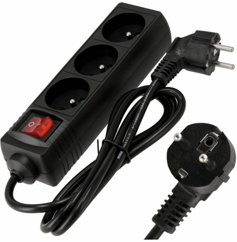 Prodlužovací kabel 1,5 m s uzemněním, 3 zásuvky - černý 3*1,0 mm2 3000 W Hlavní vlastnosti produktu: ✅ Robustní konstrukce: Náš prodlužovací kabel je navržen s ohledem na bezpečnost a výkon. Je vyroben z vysoce kvalitních materiálů, což zajišťuje spolehlivé používání. ✅ 3 zásuvky: Díky 3 zásuvkám můžete připojit několik zařízení současně, což z našeho prodlužovacího kabelu dělá nenahraditelný doma, v kanceláři nebo dílně. ✅ Délka kabelu 1,5 m: Optimální délka kabelu zajišťuje pohodlí při používání a flexibilitu při umístění zařízení. ✅ Měděný drát: Měděný (Cu) drát o průřezu 3*1,0 mm2 zaručuje nepřerušovaný přenos energie a dlouhodobou životnost. ✅ Uzemnění: Uzemnění zvyšuje bezpečnost používání tím, že eliminuje riziko přepětí a možného poškození zařízení. ✅ Výkon 3680 W: Vysoký výkon umožňuje připojení i těch nejnáročnějších elektrických zařízení. ✅ Další bezpečnostní prvky: Náš prodlužovací pás je navíc vybaven bezpečnostními prvky pro zajištění maximální bezpečnosti používání. Ideální pro domácnost, kancelář a dílnu Tento prodlužovací kabel je perfektním řešením pro domácnost, kancelář nebo dílnu. Díky bezpečnému provedení a vysoce kvalitním materiálům si můžete být jisti, že vaše zařízení budou napájena bezpečně a spolehlivě. Dětská pojistka V souladu s evropskými bezpečnostními normami jsou naše prodlužovací kabely odolné proti otevření dětmi. Díky tomu budou v bezpečí i ti nejmladší členové domácnosti a výrazně se sníží riziko náhodného přístupu k zásuvkám. Technické údaje: Model: Prodlužovací kabel 3 zásuvky 1,5 m Kabel: H05VV-F 3*1,0 mm2 Materiál drátu: měď [Cu] Délka kabelu: 1,5 m Zástrčka: síťová, úhlová, uni-schuko Počet zásuvek: 3x 2P + E Parametry zástrčky: 13A 220V - 240V AC Uzemnění: ano Přepínač: ano Třída ochrany: IP20 Výkon: 3000 W