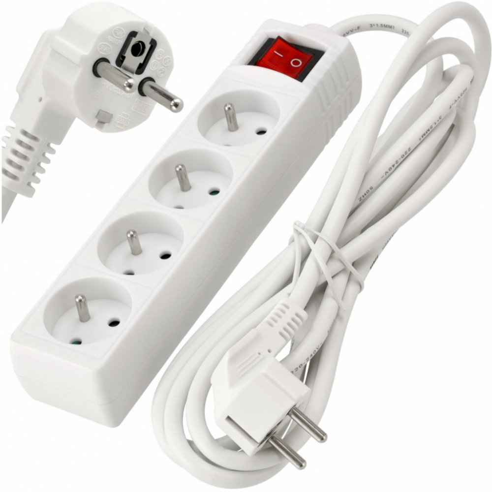 4 zásuvky: Díky 4 zásuvkám můžete připojit několik zařízení současně, díky čemuž je naše prodlužovací šňůra nenahraditelná doma, v kanceláři nebo v dílně.