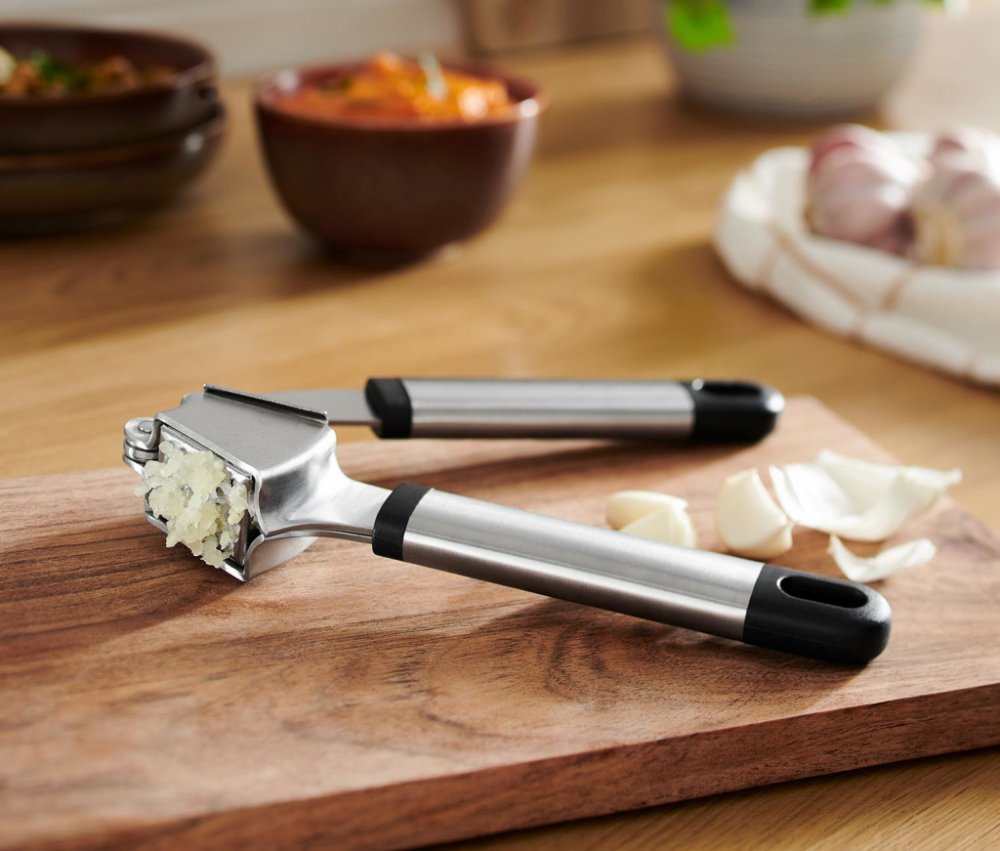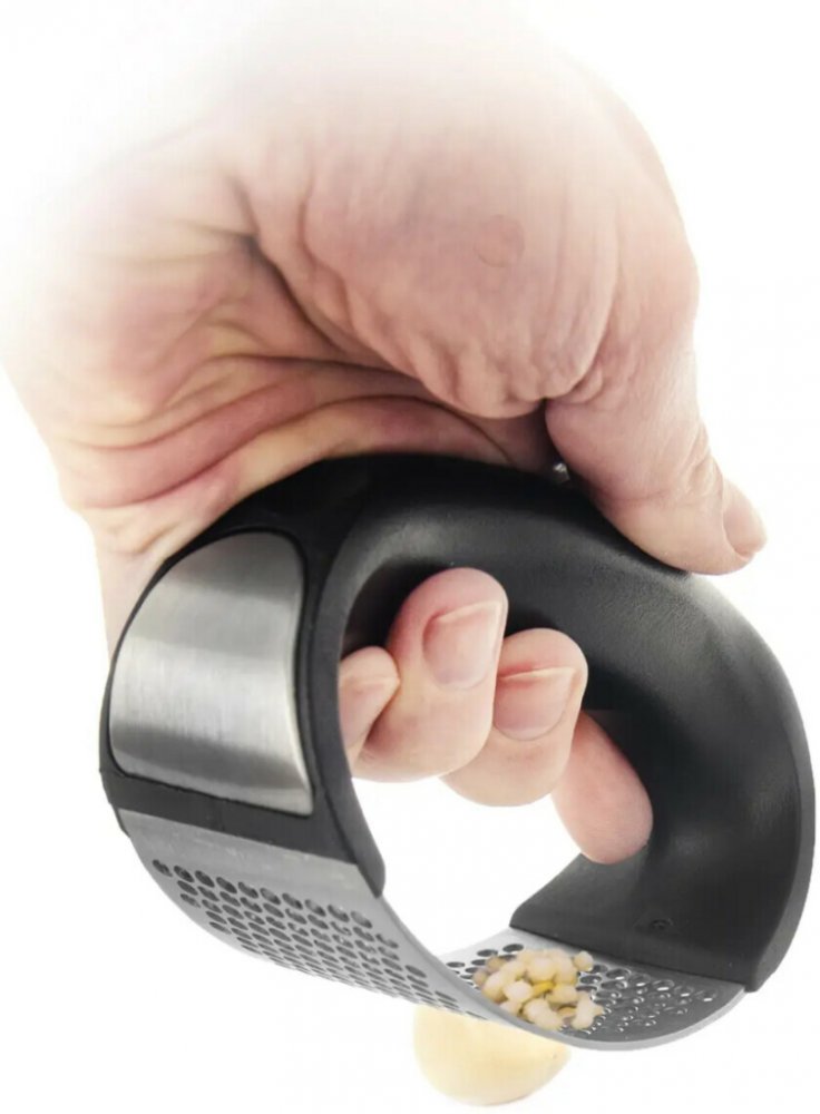 Ergonomicky tvarované rukojeti: Rukojeti jsou navrženy s ohledem na pohodlný úchop a minimalizaci únavy ruky během používání. Ergonomie je klíčovým prvkem pro pohodlí kuchaře při manipulaci s lisem na česnek.