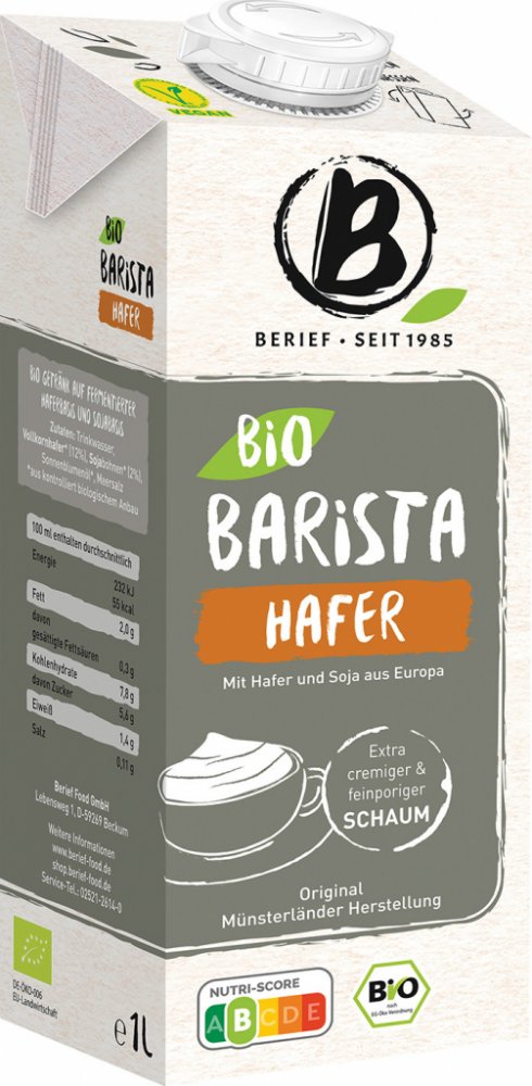 Dokonalá pěna! Milujete krémové macchiato nebo cappuccino? Staňte se na chvíli profesionálním baristou s bio ovesným nápojem BARISTA. 12% celozrnného bio ovsa a 2% bio sójových bobů z Evropské produkce vám zajistí dokonalou pěnu bez použití stabilizátorů.