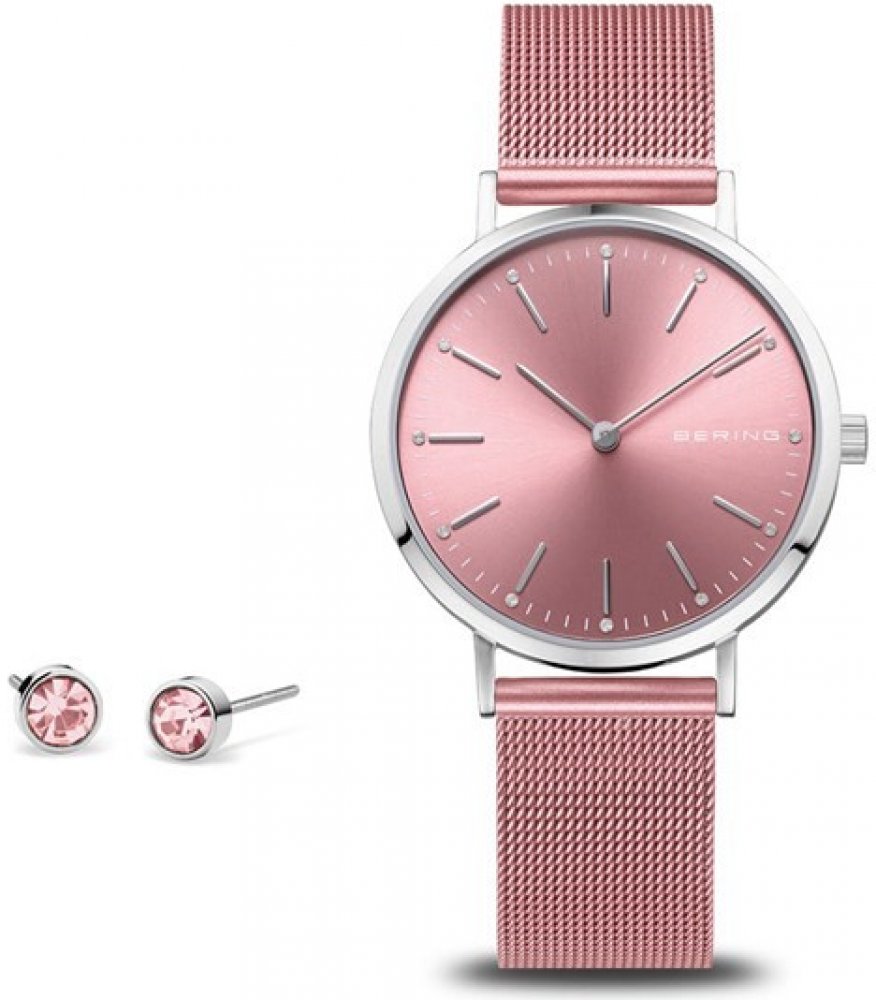 Dámské hodinky Bering Time is Life v setu s ocelovými náušnicemi zdobenými Swarovski křišťály.