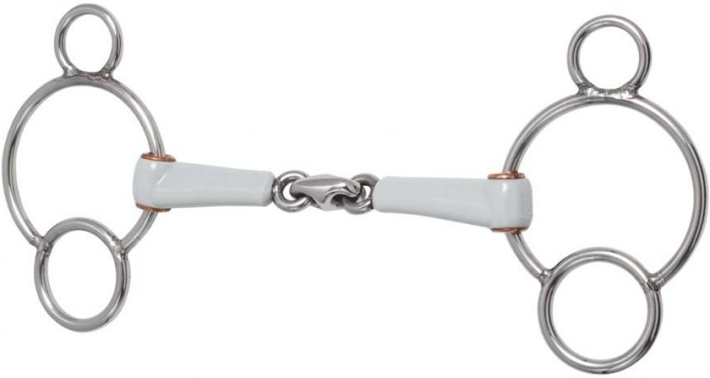 Nový model dvakrát lomeného udidla z plastu je navrženo tak, aby bylo zejména úzké a pohodlné, s širokými kontaktními plochami a nízkou výškou – ideální i pro menší koně. Povrch plastu je velmi hladký a snadno klouže v hubě - i u koní, kteří produkují méně slin. Udidlo spočívá na jazyku a pyscích díky široké kontaktní ploše a hladký profil elegantně přechází do prostředního dílu ve tvaru olivy. Klouby a střední část jsou pečlivě zpracovány a sestaveny tak, aby odpovídaly nízké výšce udidla. Díky zabudovaným měděným pouzdrům kroužky udidla hladce kloužou a zajišťují přesnou a jemnou práci otěžemi. Ručně vyrobeno v Německu.