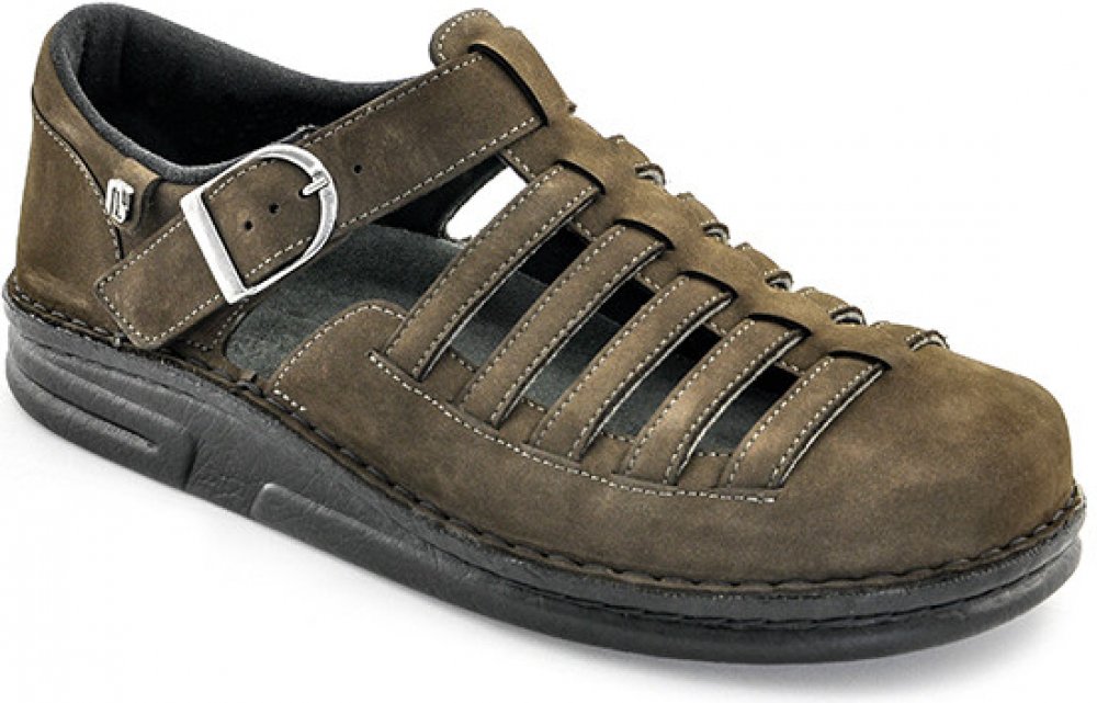 SANDÁL CORSO PATŘÍ MEZI ZDRAVOU OBUV GLOBOCONCEPT. Je vhodná pro pány které mají problémy obou noh, je profylaktické a terapeutické řešení pro pohodlí v obuvi. Pantofel má šířku J díky suchým zipům si ji můžete upravit na noze, vyklenuti je 15 mm a podpatek 25 mm. Všechny GloboConcept boty jsou vybaveny příjemnou, měkkou a vyměnitelnou stélkou. Ta však může být nahrazena vlastní ortopedickou stélkou. Tento model je vyráběn v hnědém nubuku a v černé kůži. Preferované aplikace: • Polštářky měkké a silné výšky. • Deformace nohy nízkým a středním otokem. • Revmatoidní noha deformace. • Diabetes mellitus ( profylakticky DFS ) pro diabetiky. • Tvar nohy - široká šířka J v pánském provedení.