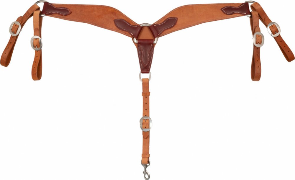 Vysoce kvalitní westernový poprsník vyrobený z kůže. Vybavený karabinou pro pohodlné připnutí k podbřišníku. Opatřený kováním ve stříbrné barvě. Zdobený kontrastním prošíváním. Dostupný v jedné nastavitelné velikosti.