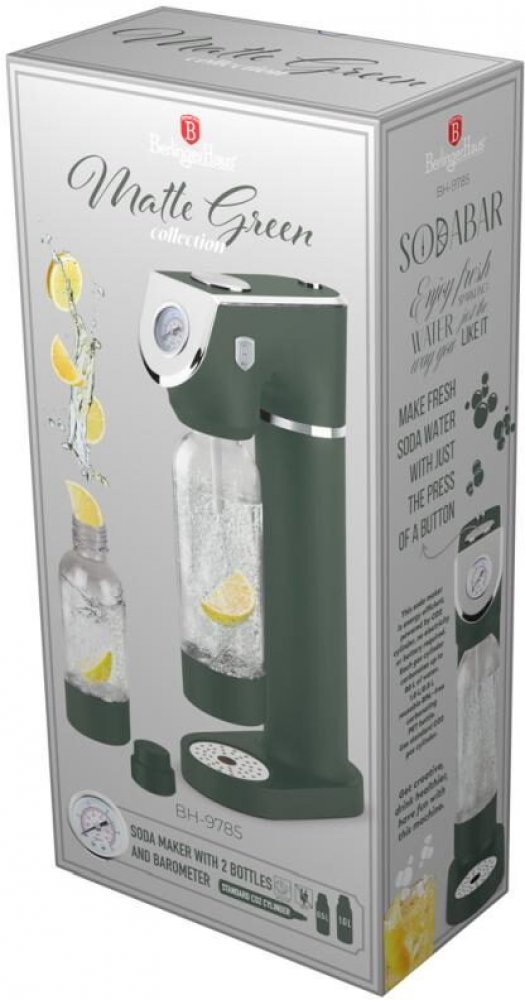 Osvěžení bez elektřiny – připravte si perlivou vodu kdykoli a kdekoli! Výrobník sody BERLINGERHAUS z kolekce Matte Green přináší moderní, ekologické a stylové řešení pro domácí přípravu sodovky.