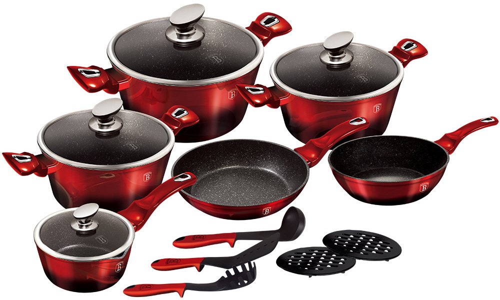 Tato 15-ti dílná sada nádobí je sadou z řady METALLIC, která se stala jistým kultem značky Berlingerhaus. Produkty zařazené do této řady se vyznačují netradičním designem, který tkví v různých barevných provedení a jejich lesklém zpracování. Pro tyto vlastnosti se řada METALLIC stala jednou z nejoblíbenějších na trhu. Co se využití jednotlivých kusů v sadě týká, přemýšlite-li o kompletní obměně kuchyňského nádobí, nenajdete pravděpodobně složení vhodnější. Tato sada obstará přípravu jídla opravdu na jakoukoliv událost, která může nastat. Ze zkušenosti víme, že s největším hrncem připravíte pokrm i pro 6 a více lidí. Současně, vyžaduje-li situace, si pro 1-3 strávníky vystačíte s hrncem nejmenším.