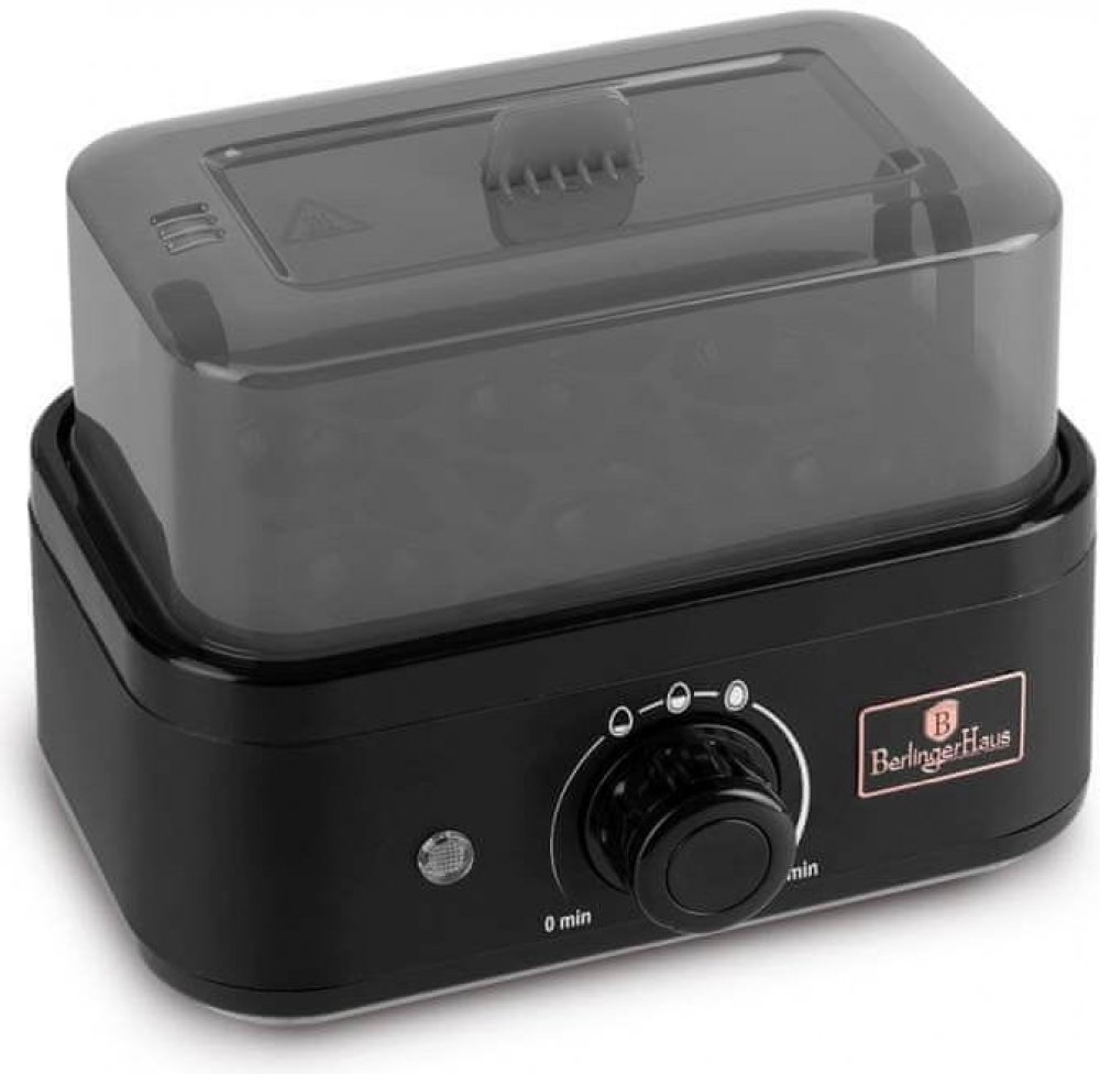 - Výkon: 400 W, 220-240 V, 50 Hz - Kapacita: maximálně 6 vajec- Příslušenství: - Sáček na vejce - 6 ks- Kryt na odpadky s rukojetí- Odměrka s vpichovací jehlou na dně- Miska na vejce- Barva: černo-růžově zlatá - světelný indikátor- Knoflík se 3 stupni tvrdosti: měkký, střední, tvrdý- Časovač- Akustický signál po ukončení varu- Funkce automatického vypnutí - Délka napájecího kabelu: 60 cm.