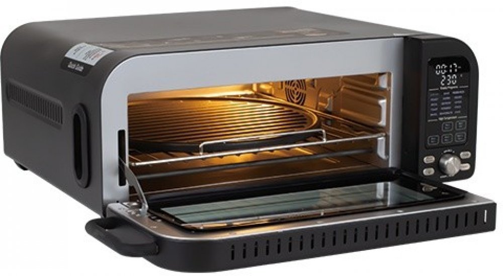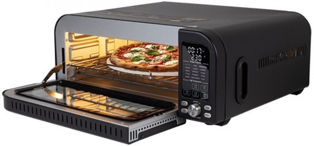 Pec na pizzu elektrická Black rose Collection 2 000W • Výkon: 2000W • Napětí: 220-240 V • Kapacita: 18 l (12" pizza) • 6 příslušenství: • Rošt do trouby • Hliníkový spodní plech • Chromovaný koš na vzduchové smažení • Oboustranný litinový plech • Kámen na pizzu • Nástroj pro aportování • Barva: černo-růžová zlatá • Teplotní rozsah: 40-400°C • Konvekční ventilátor pro funkci smažení vzduchem • Digitální displej • 15 funkcí: smažení vzduchem/pečení/rohování/toast/bagel/pečení/ohřev/rozmrazování/fermentace/dehydratace/mražená pizza/zelenina/hranolky/křídla/dort • 3vrstvá skleněná dvířka - pravé průhledné, tvrzené sklo