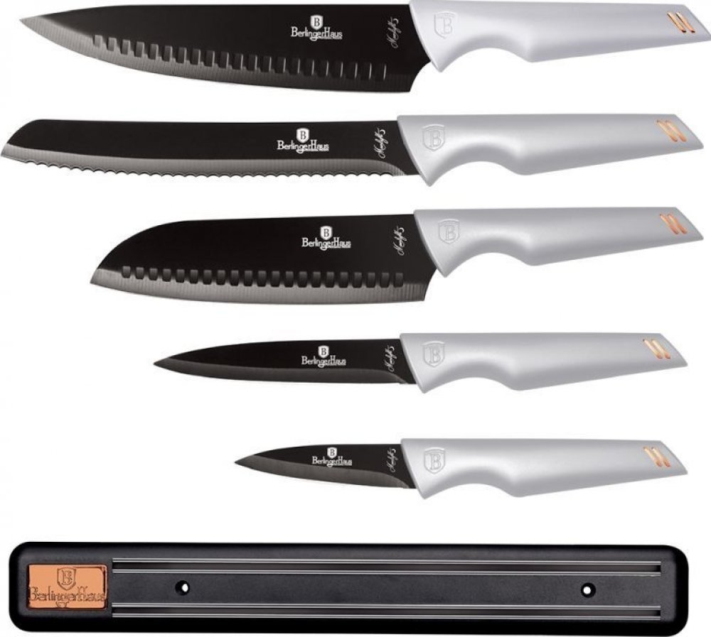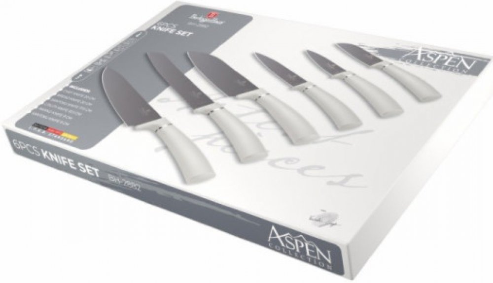 Sada Berlingerhaus Aspen Collection se skládá z 6 nožů. Jejich čepele se vyrábí z nerezové oceli s tmavě šedým nepřilnavým povrchem. Jsou antibakteriální a nepřenáší pachy. Nezůstávají na nich skvrny od jídla a snadno je umyjete.
