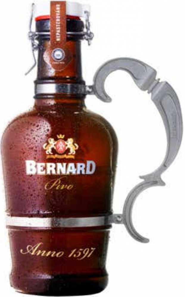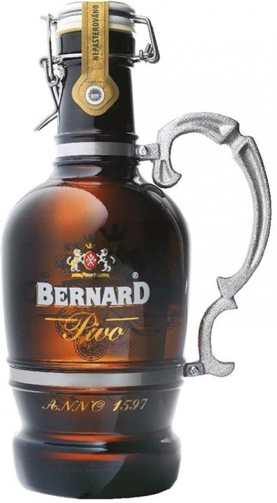 Luxusní skleněný džbánek Bernard s patentním uzávěrem obsahující nefiltrovaný ležák, pivo s výrazným řízem a jemnou kvasnicovou chutí i vůní. Složení: Pitná voda, ječný slad ze sladovny Bernard, žatecký upravený chmel, chmelový extrakt. Alergeny: Obsahuje obiloviny obsahující lepek (ječmen). Obsah alkoholu: 5% Obsah lahve: 2l Země původu: Česká republika Zákaz prodeje alkoholických ná