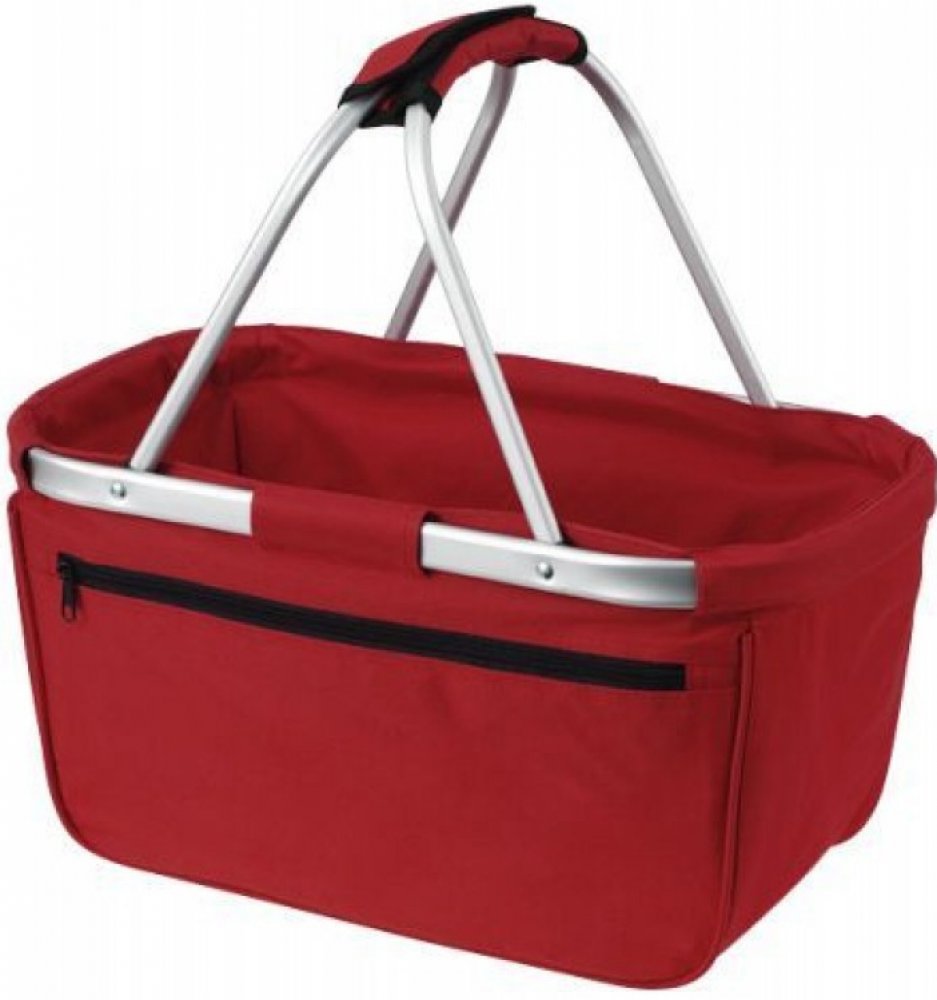 Skládací nákupní košík, hliníkový rám, 600D polyester. Doporučená technologie potisku: sítotisk K, DTR. Maximální velikost potisku: 100 x 100 mm. Rozměry: 25 x 25 x 45 cm. Kartonové množství v ks: 10.