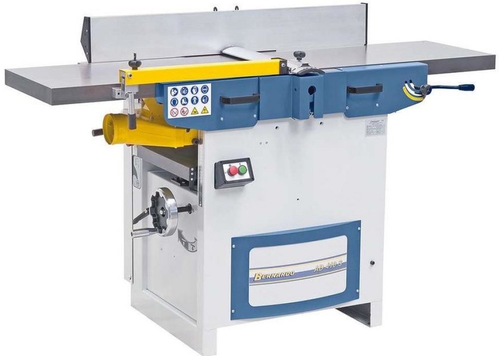 Srovnávací a tloušťkovací frézka Bernardo AD 410 S (400 V) Srovnávací a tloušťkovací frézky AD 410 s optimálním poměrem ceny a výkonu jsou ideální pro profesionální truhláře. Maximální uživatelský komfort s odklápěcí dvojicí srovnávacích stolů obou modelů snižují potřebné časy na přeměnu ze srovnávání na tloušťkování Tloušťkovací litinový stůl s centrálním nastavením a vedením pro obrobky do tlouš...